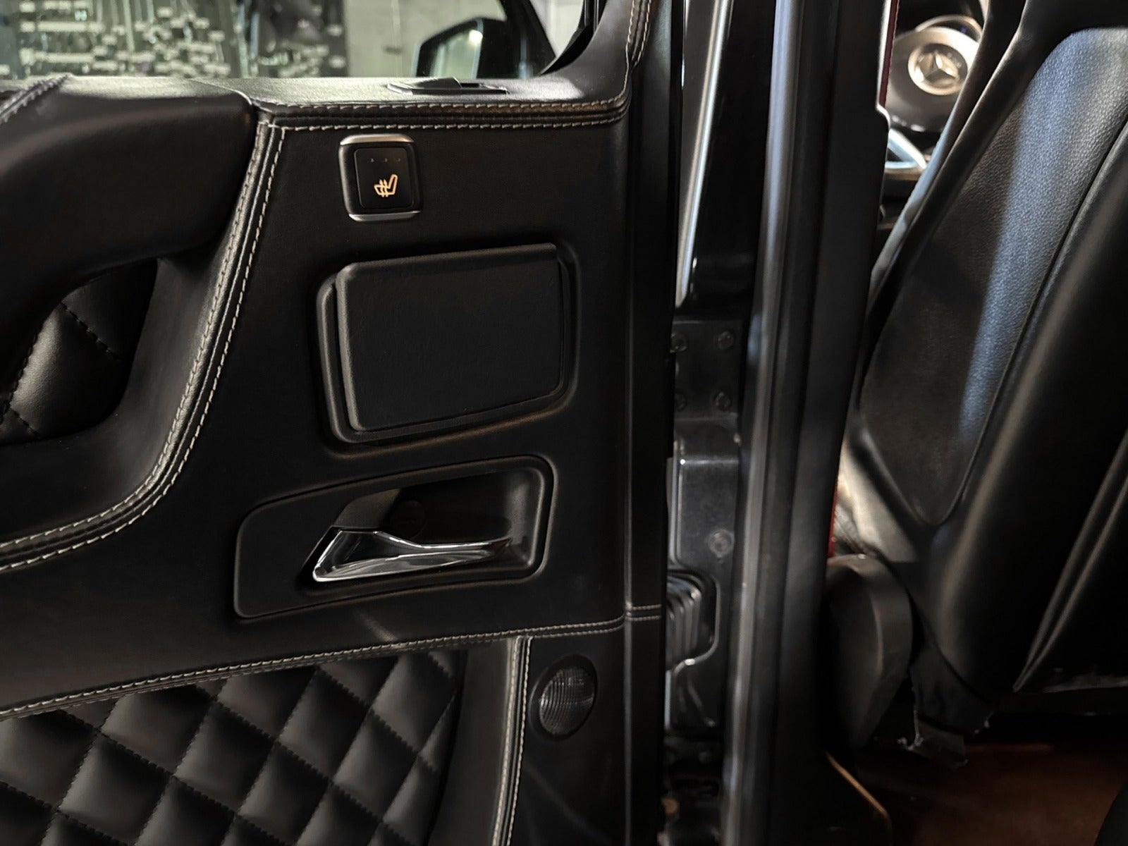En helt speciel, velholdt og sjælden G-Klasse udbydes, Mat Sort, AMG, kørecomputer, bagagerumsdækken, multifunktionsrat, læderrat, læderindtræk, el indst. førersæde m. memory, justerbar lændestøtte, splitbagsæde, 22" alufælge, el-soltag, el-klapbare sidespejle, tågelygter, bi-xenon, tagræling, træk, automatgear, ratgearskifte, fuldaut. klima, fjernb. centrallås, adaptiv fartpilot, udv. temp. måler, sædekøling, sædevarme, el-ruder, navigation, aux tilslutning, parkeringssensor (bag), parkeringssensor (for), isofix, airbag