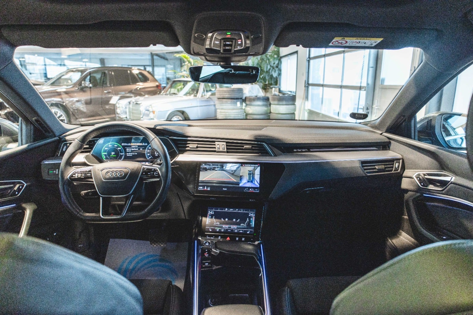 Denne Audi e-tron 55 S-line fra 2022 kombinerer sofistikeret el-kraft med quattro-firehjulstræk, sportspakke og en rummelig, luksuriøs kabine. Med ladestik i begge sider får du fleksibel opladning og maksimal bekvemmelighed – ideel til både hverdagskørsel og lange ture.