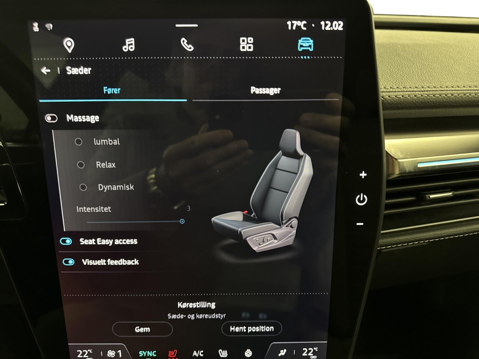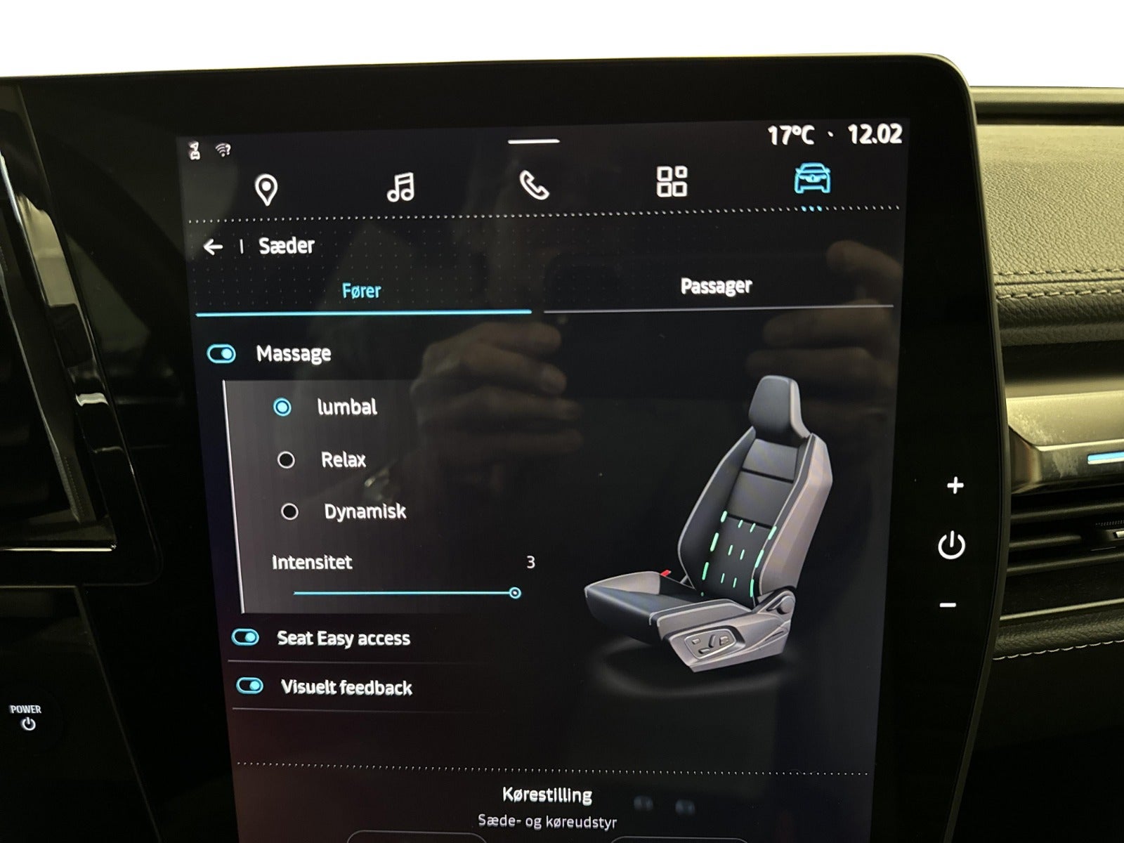 kørecomputer, digitalt cockpit, multifunktionsrat, læderrat, læderindtræk, el indst. førersæde m. memory, massage i forsæder, splitbagsæde, mørk loftbeklædning, ambiente belysning, el-klapbare sidespejle m/varme, fuld led forlygter, kurvelys, adaptive forlygter, led baglygter, mørktonede ruder i bag, varme i rat, 2 zone klima, varmepumpe, nøglefri adgang, nøglefri tænding, adaptiv fartpilot, aut. nedbl. bakspejl, udv. temp. måler, sædevarme, 4x el-ruder, elektrisk parkeringsbremse, trådløs mobilopladning, app integration, dab+ radio, navigation, håndfrit til mobil, musikstreaming via bluetooth, android auto, apple carplay, usb-c tilslutning, regnsensor, 360° kamera, parkeringssensor (bag), parkeringssensor (for), dæktryksmåler, isofix, automatisk lys, airbag, vognbaneassistent, blindvinkelsassistent